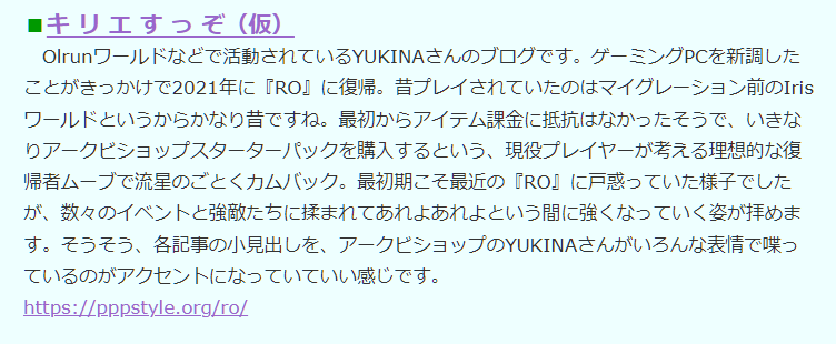 週間ROチャレンジ!さんからご連絡を頂き、紹介されていました。